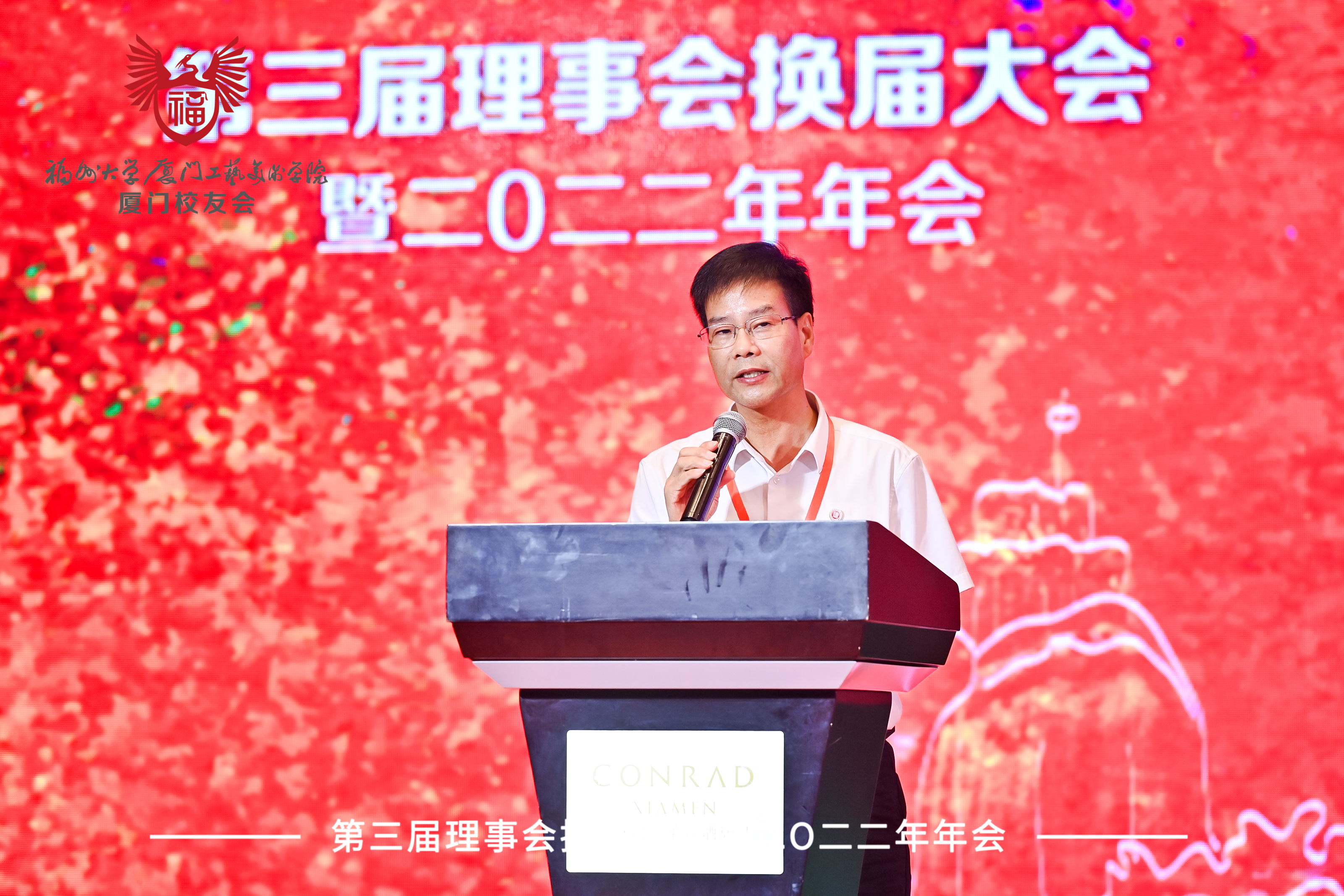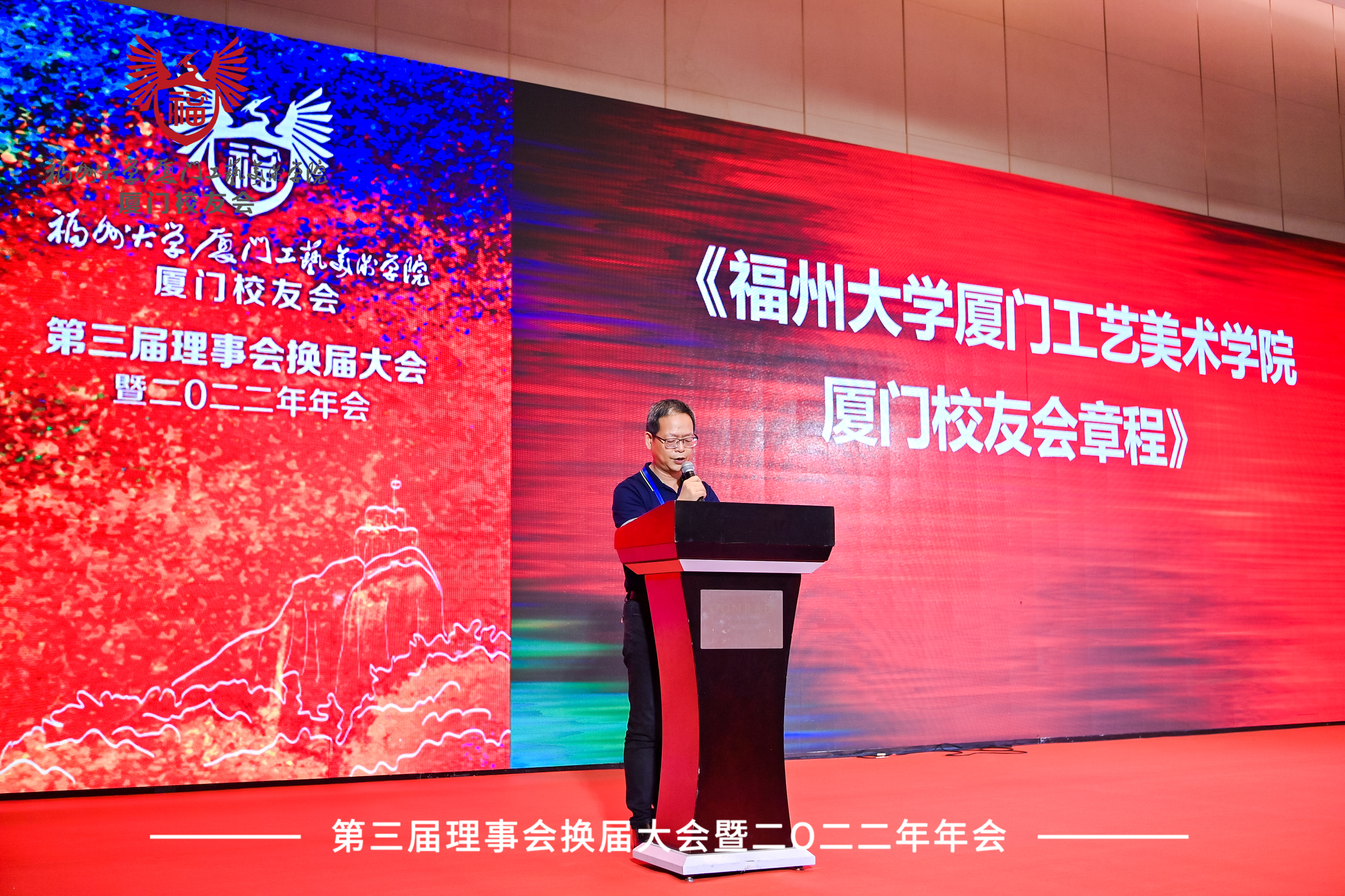 2022年6月12日,福州大学厦门工艺美术学院厦门校友会第三届理事会换届大会在厦门著名的地标双子塔——厦门康莱德酒店六楼隆重举行。