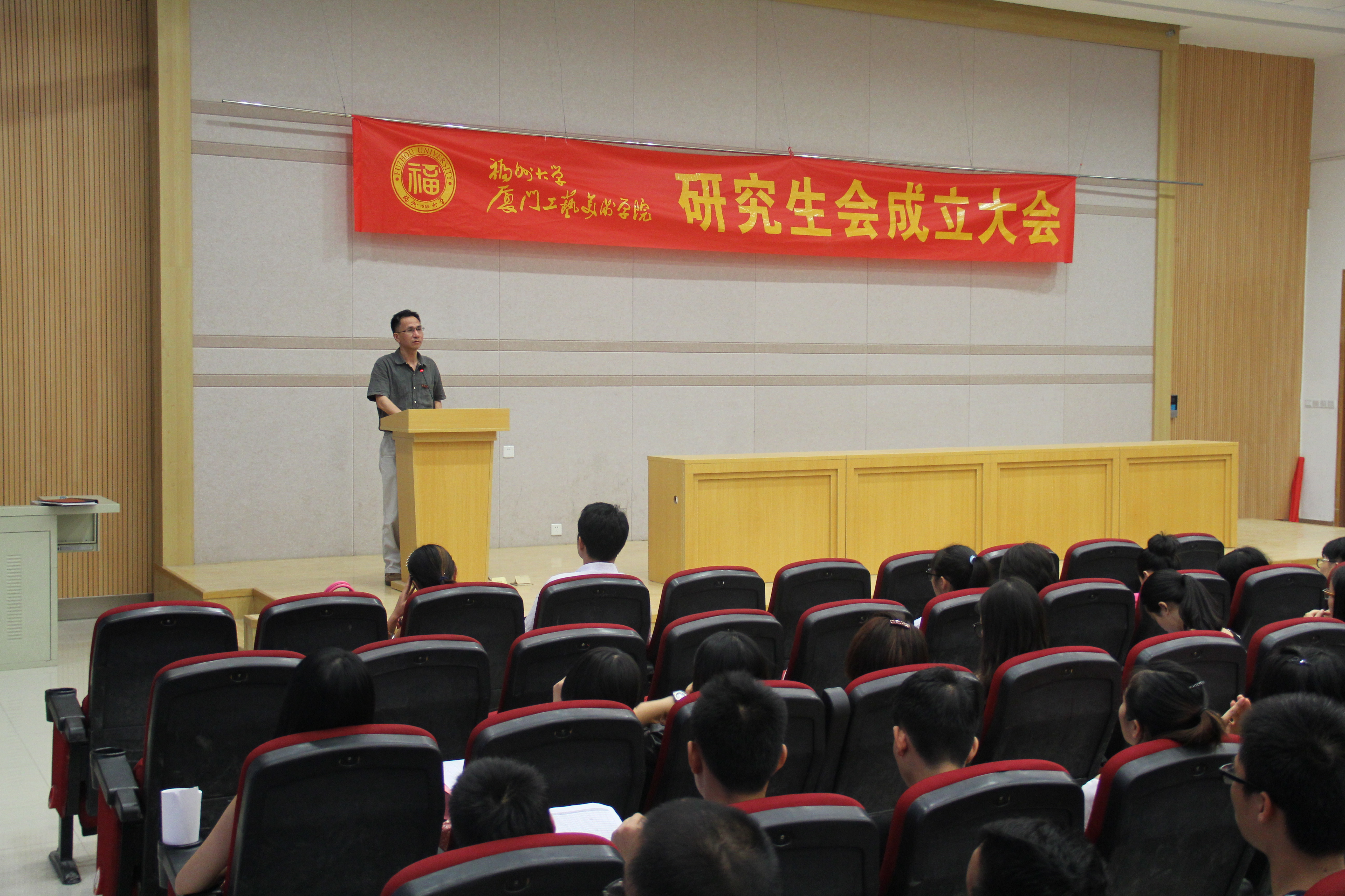 大会首先由工作人员宣读《福州大学厦门工艺美术学院研究生会章程》。随后,陈振兴老师宣读学院首届研究生会干部任职名单,2012级研究生陈媛同学作为首届研究生会主席上台宣誓就职。