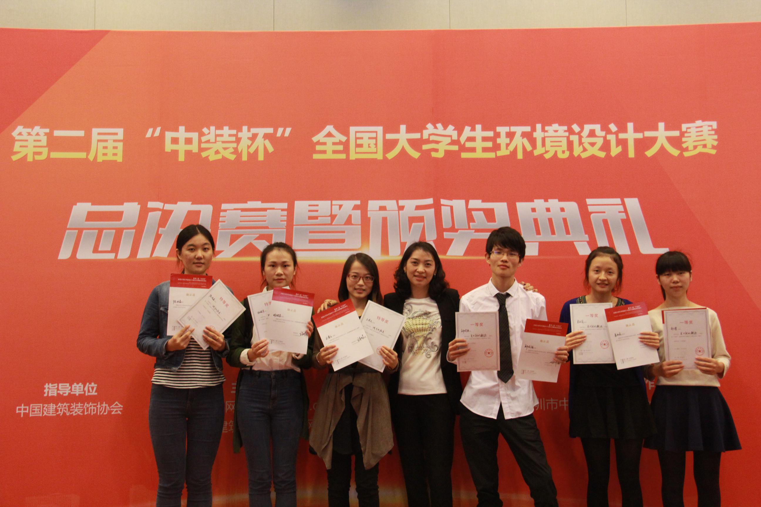 日前,第二届”中装杯”全国大学生环境设计大赛暨颁奖典礼在北京服装学院隆重举行。我院学生凭着优秀的作品和沉着机智的现场表现,从上千名参赛者中脱颖而出,斩获了本届大赛唯一的特等奖和一等奖,并获得2个三等奖、3个优秀奖和6个最受欢迎作品奖,其中6名获奖学生获得进入知名建筑装饰企业和设计机构实习、就业的机会。同时,我院获优秀组织奖、环艺系梁青老师获优秀指导老师奖。