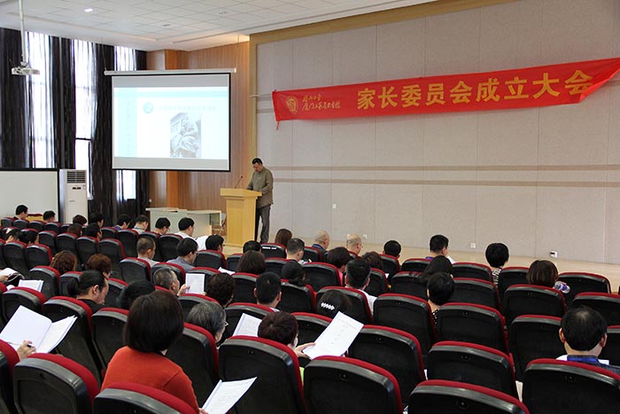 3月29日下午,厦门工艺美术学院家长委员会成立大会在集美校区2号教学楼311报告厅隆重举行。佘国华常务副院长、郑顺利副书记以及来自各地区、各行各业的60名家长代表参加了大会。大会由学院党委委员、团委书记兼学生科科长陈振兴主持。 首先,佘国华常务副院长介绍了学院的情况并致欢迎词。接着工作人员宣读了《福州大学厦门工艺美术学院家长委员会的章程》,《章程》获得与会全体委员一致通过。接着郑顺利副书记宣读了家长委员会常务委员会组成名单,并和佘国华常务副院长共同为常委们颁发聘书。经学生工作组推荐,由厦门市委纪委常委苏培雄先生担任家长委员会主任,副主任分别是郑小明、杨春煌、林海深、刘家勇和丁明珠,团委书记陈振兴老师任秘书长。紧接着,委员代表林海深同志发言。成立大会圆满结束。会后,两位院领导与全体参会的家委会委员及辅导员们在2号教学楼门口合影留念。 合影后,辅导员和志愿者们带着家长委员们参观校园。常委们到107会议室召开家长委员会常务委员会第一次会议,会议由陈振兴老师主持。会上,家委会常委们就“如何更好地做好家校联动”“如何更好地发挥家长委员会的作用共同做好学生思想政治教育工作”“家长如何协助学院做好学生的安全教育”“如何发挥家长在毕业实习、就业过程中的作用”“如何让家长更好地参加到学校的重大活动中”等议题展开深入而充分地讨论。常委们都表示成立“家委会”这个举措很有意义,既可以充分合理地利用知情权、评议权和监督权,主动了解学校的教育理念、方法、成效,也可以及时获取实用而又丰富的教育信息,更加充分地发挥家、校双方协作互补、凝心聚力的合力效应。常委们还表示,他们都愿意认真履行职责、积极配合学院共同把孩子们教育好、培养好,并积极为学院的发展建设建言献策、贡献力量。 家长委员会的成立是我院积极探索,深入推进合力育人工程的新举措,加强学校与家长、家长与家长之间的联系,构建起由学校、家庭、社会三位一体的教育网络,为大学生的成长、成才创造更好的环境。同时通过家长委员会这个平台,力求帮助解决学生教育管理和就业发展等过程中遇到的实际问题和困难,为学院建设和学生发展创造良好的外部环境。