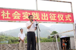 出征仪式在雄壮的国歌声中拉开序幕。林键书记首先发表了重要讲话,他代表学院党政领 导班子向参加暑期社会实践的老师和同学致以亲切的问候和良好的祝愿,并提出三点要求:一是强调师生要牢牢树立“安全第一“的思想;二是希望大家统一思想, 提高认识,深入调查,注重实效,圆满完成任务;三是提醒同学们要注意文明礼仪,展现我院青年学子的良好形象。最后预祝我院2013暑期社会实践活动取得圆 满成功。