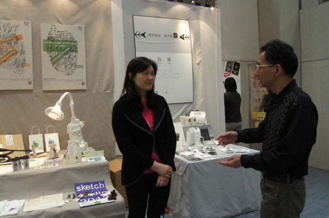 叶青副处长(右一)在郑顺利副书记(左一)的陪同下参观我院毕业生作品汇报展