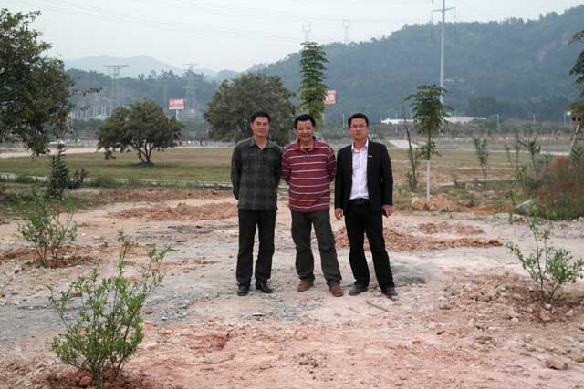最后,李桂松校友与佘国华常务副院长、团委书记陈振兴老师在蓝莓树前合影留念。