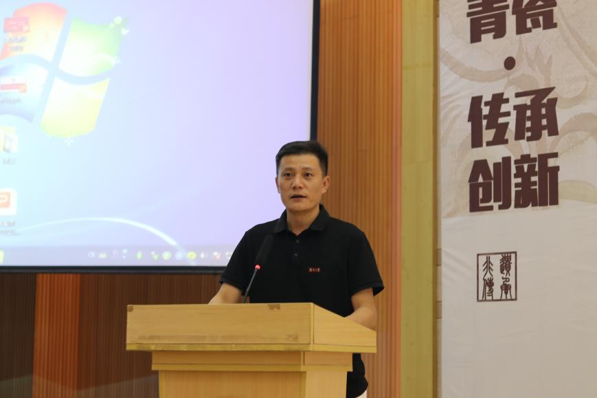 厦门同安窑珠光青瓷传承与创新研修班教师代表潘尤龙教授发表讲话,他说“作为一名教师,有义务和职责把为学员们传道受业解惑。在传统手工技艺有效传承的基础上,科学引导各项技艺拥有者、从业者融入现代生活、智慧时代。注重产、学、研相结合、学校优势与一线企业相结合、文化传承与创新成果转化相结合,努力办出“特色”、办出“精品”、办出“成效”,真正做到高效服务地方。” 向学员提出了殷切期望,希望参训的每一位学员必须会从思想上真正重视起来,做到虚心求教;严格遵守培训纪律,严格遵守作息时间。上课期间要认真听老师讲课,用心做好笔记;要认真听从组织人员和教员的安排,完成一个半月的学习任务。