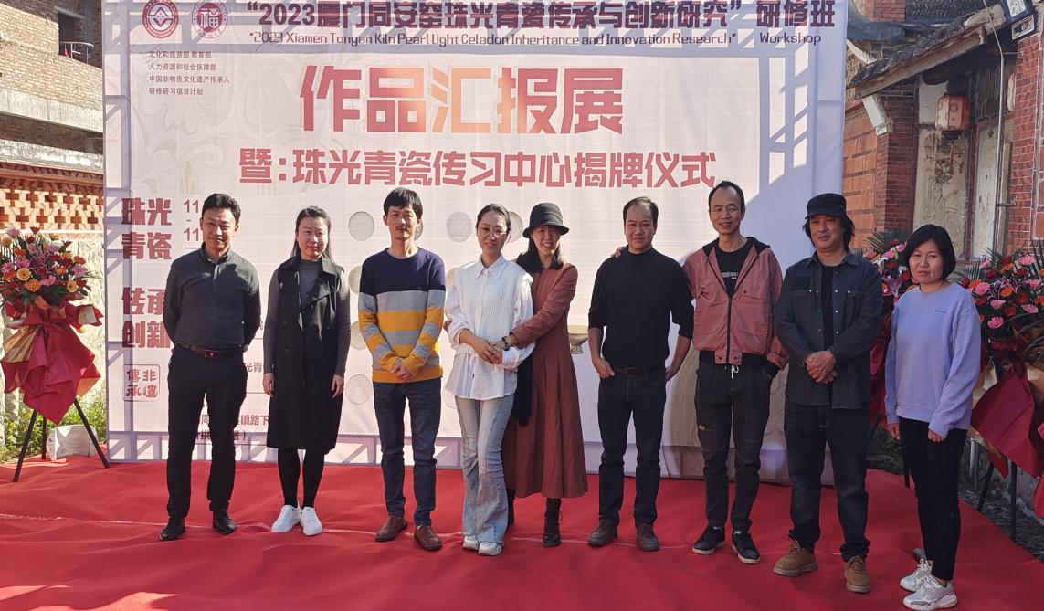 福州大学主办,福州大学厦门工艺美术学院承办的非物质文化遗产传承人研培计划——2023年厦门同安窑珠光青瓷传承与创新研修班学员作品汇报展开幕式暨珠光青瓷传习中心揭牌仪式11月17日在厦门同安区汀溪镇叶拱南故居举行,此次展览为期8天,共展出50余件学员优秀作品与非遗传承人精品之作。首次以珠光青瓷为主的创新设计作品展,旨在为同安窑珠光青瓷的发展与创新谱写新曲。