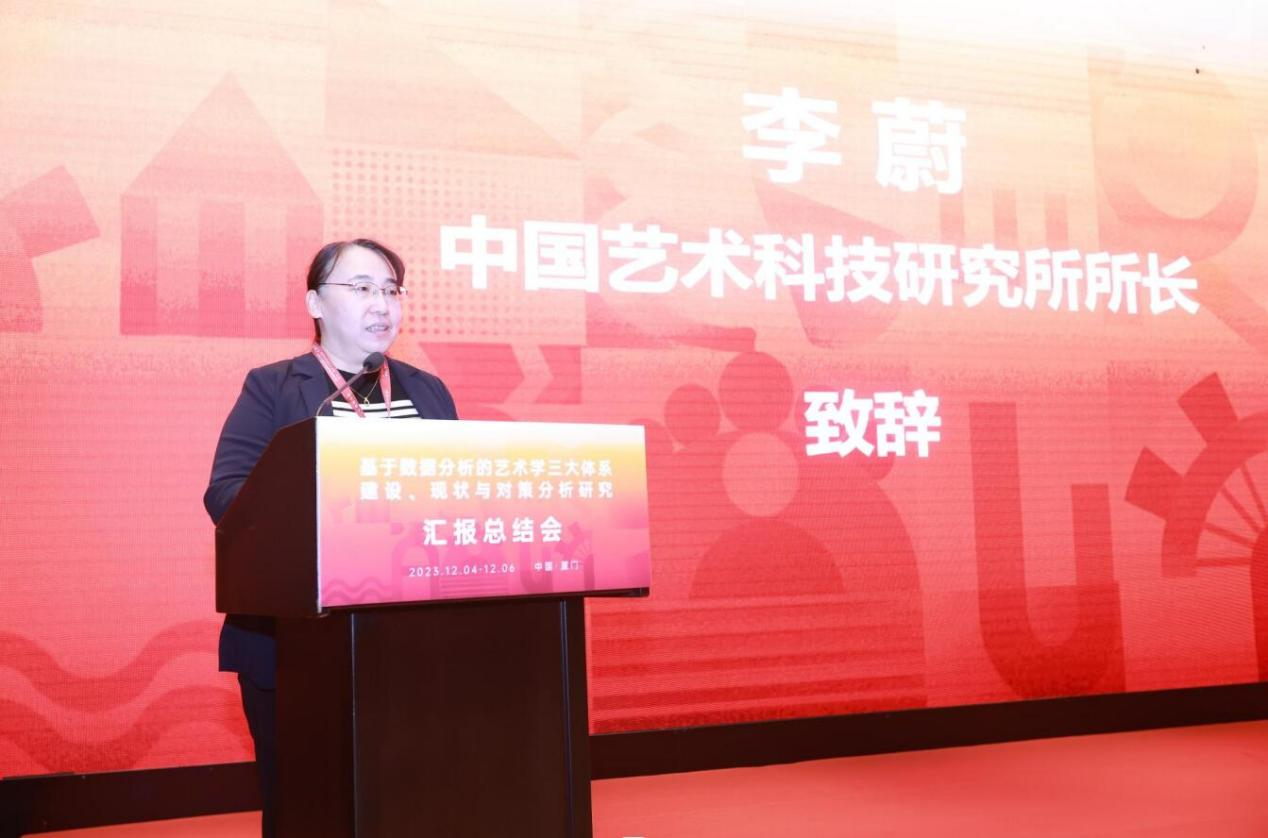 李蔚所长作了会议总结发言,她指出:与会代表通过交流研讨进一步深化了对习近平文化思想的学习理解和认识,特别是对构建中国特色艺术学“三大体系”重要性和必要性的认识,并对研究成果给予了高度肯定,艺科所通过项目组织第一次深入各艺术学学科领域,从组织服务者变成了组织者与研究者,有助于在今后的管理工作中把工作做得更加专业,更好地为艺术科研服务,为全国艺术科研规划办提出更加科学合理的建议。同时,“探索和倡导了数据分析的研究方法,以用数据说话,定量分析与定性分析结合,为艺术科研工作拓展了新的研究目标,丰富了研究手段。