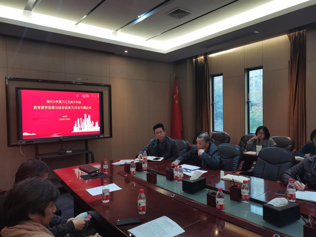 2024年1月19日下午,福州大学厦门工艺美术学院第一次教育教学思想与综合改革大讨论专题会议在美院2号教学楼107会议室召开。会议由学院党政办主任张友恭主持,学院党委书记李礼建、党委副书记林金强、副院长张健、各系部负责人、专业负责人,各行政部门负责人及教务科全体成员出席会议。