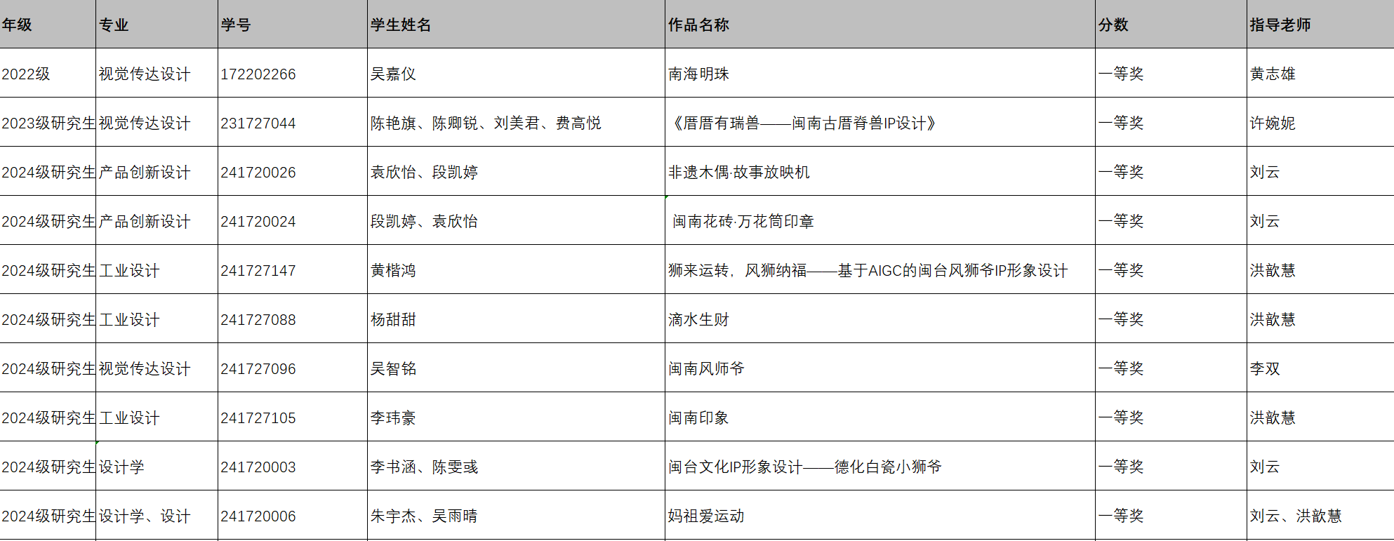 本次 “数智赋能・强国有我 | 闽台文化遗产创新设计大赛” 及展示活动至此圆满结束。作为 “一院一品” 党建特色项目,大赛在党组织的全面统筹和精心规划下,党内外教师组成先锋团队,引领广大学生深度探寻闽台文化遗产内涵,运用先进AIGC技术创作出一批富有感染力与创新性的作品,成功构建起高校艺术设计教育与文化传承深度融合发展的创新范例。