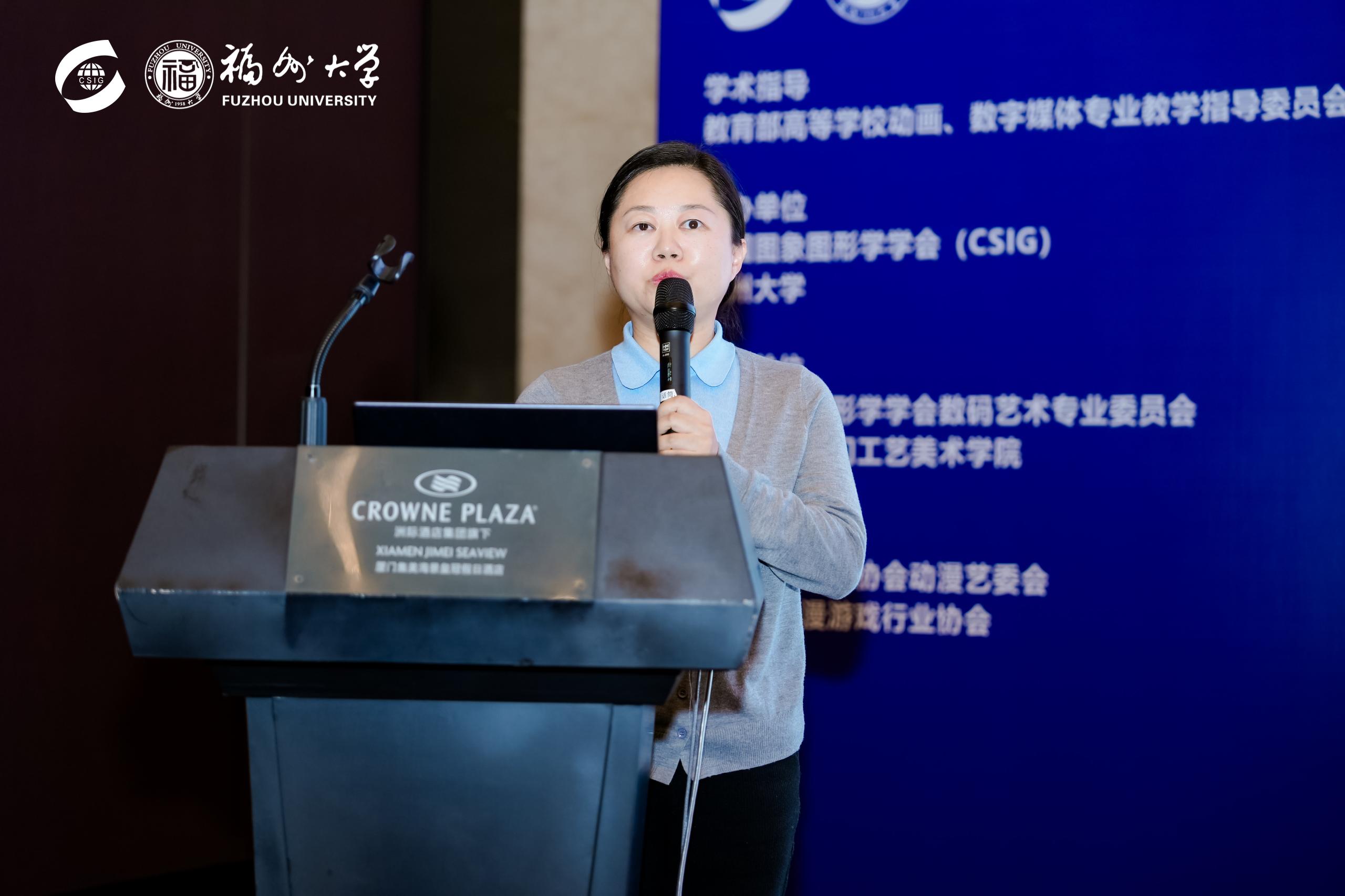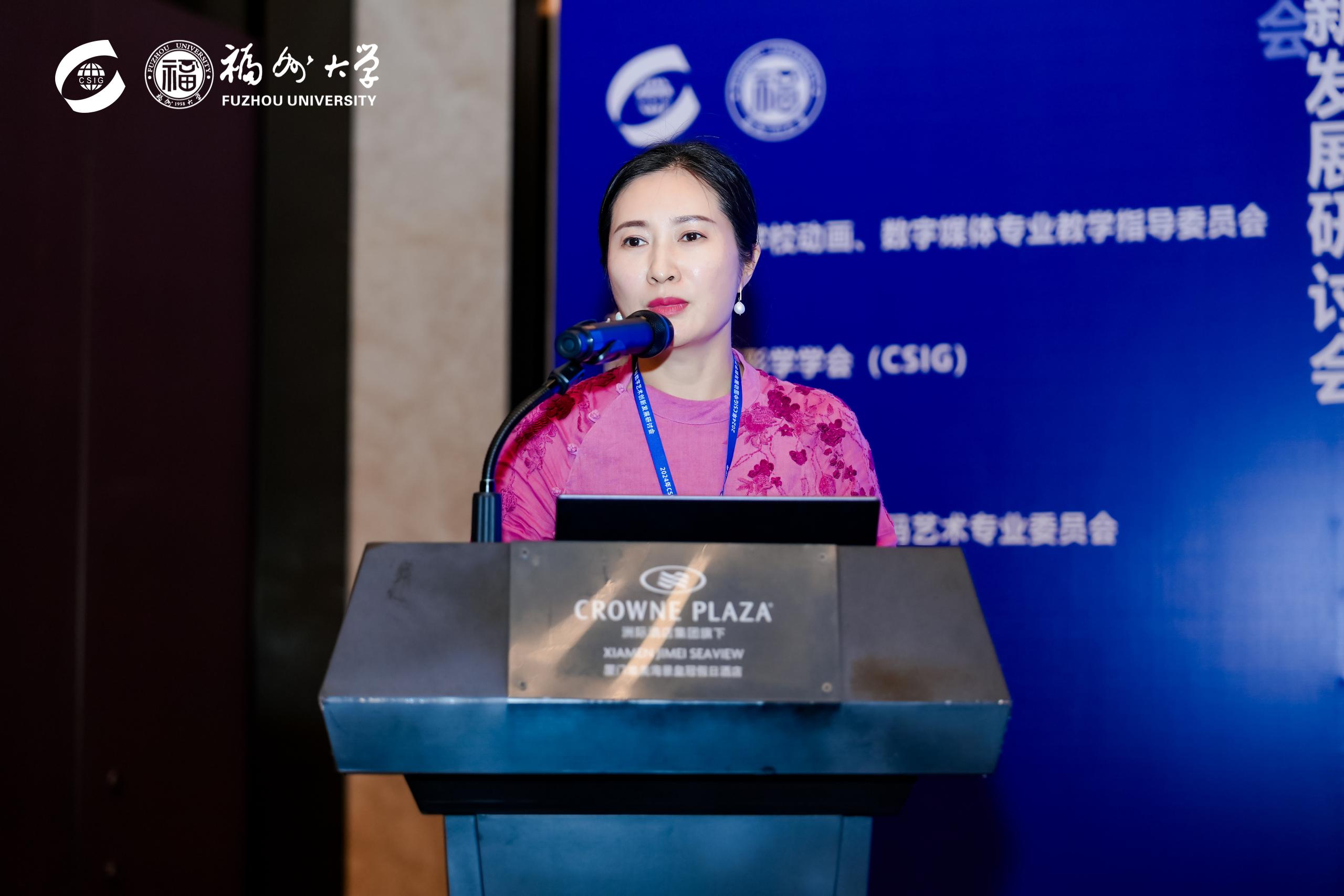 天津美术学院影视与传媒学院副院长、中国图象图形学学会数码艺术专委会副主任余春娜教授发表主旨演讲