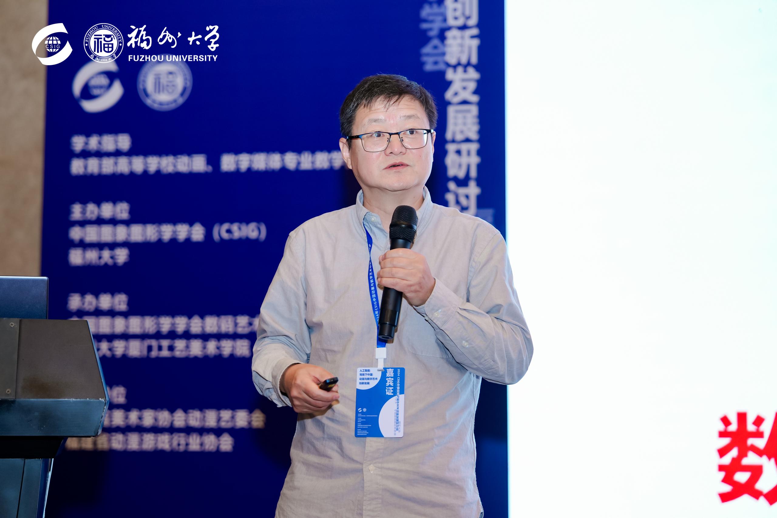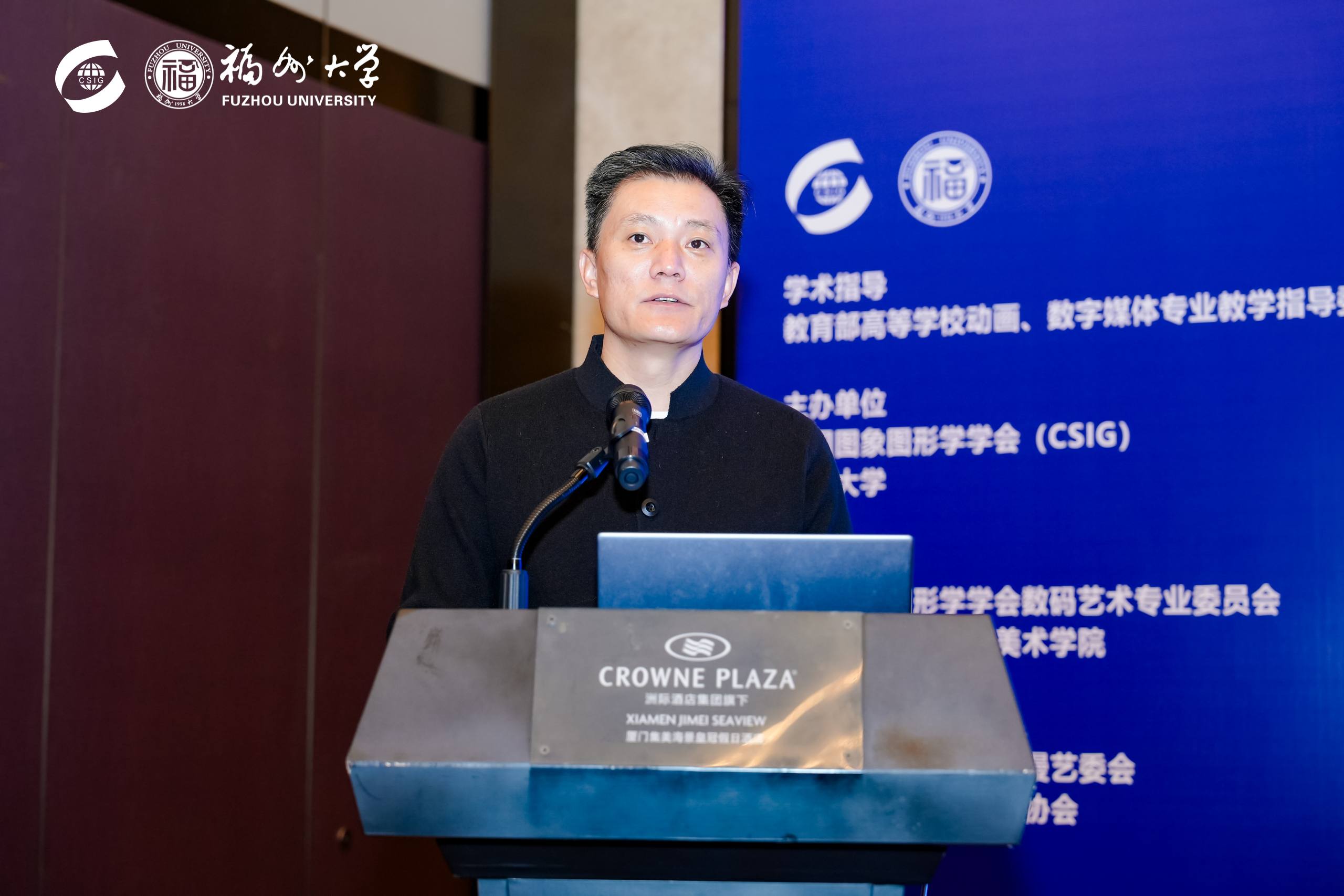 中国传媒大学动画与数字艺术学院副院长、中国图象图形学学会数码艺术专委会秘书长陈京炜教授发表主旨演讲