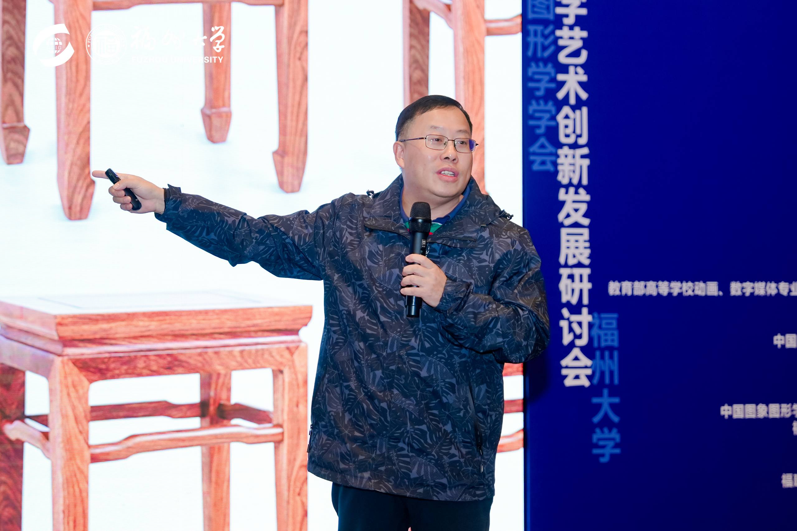 教育部高等学校动画、数字媒体专业教学指导委员会委员,四川美术学院影视动画学院院长周宗凯教授发表主旨演讲