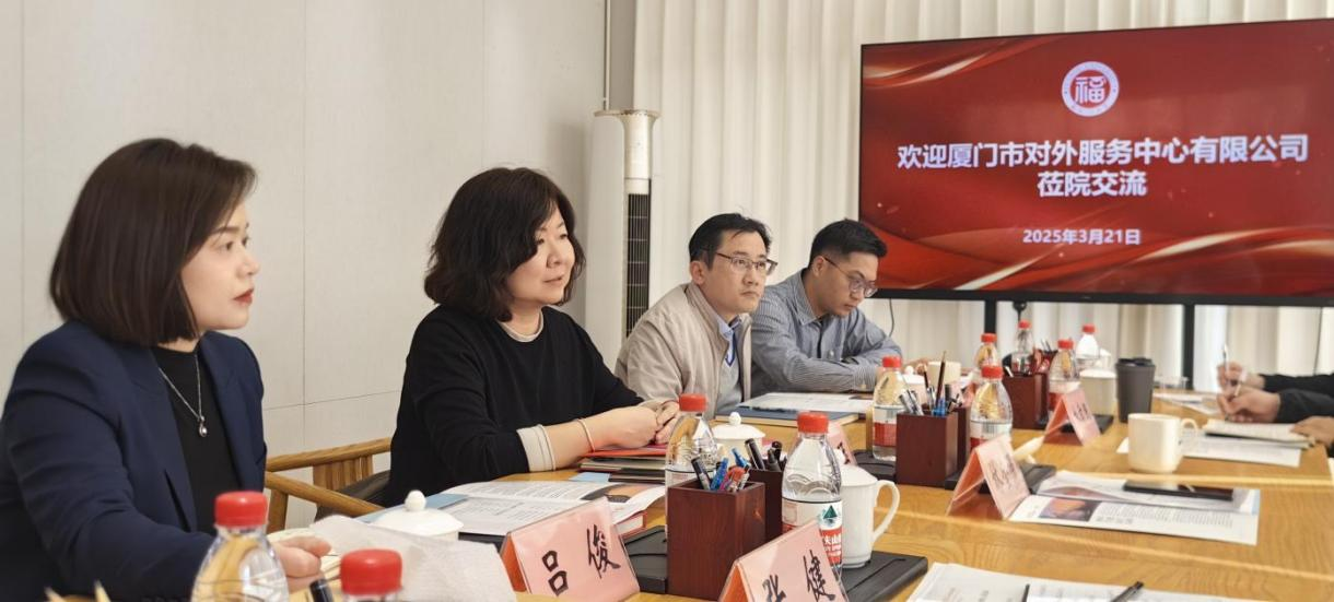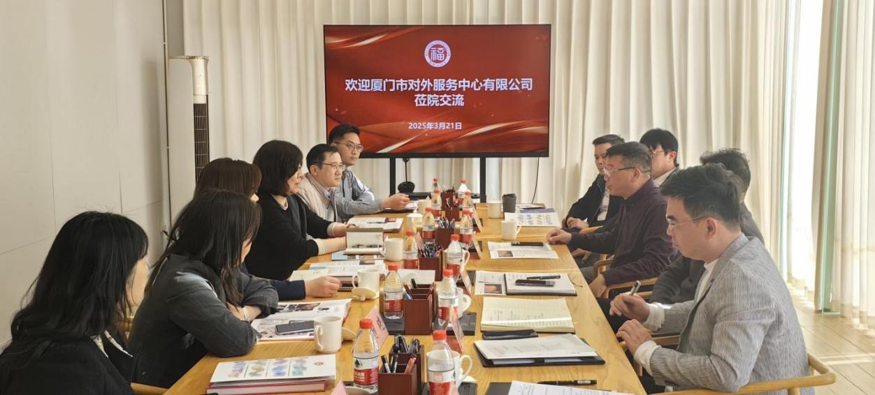 2025年3月21日,厦门市对外服务中心有限公司常务副总经理毛鲁珏、礼宾事务部总经理李德谦、展会活动部副总经理吕俊、国际业务部副总经理刘晓等一行六人来访我院,就校企合作相关事宜展开深入交流与探讨。