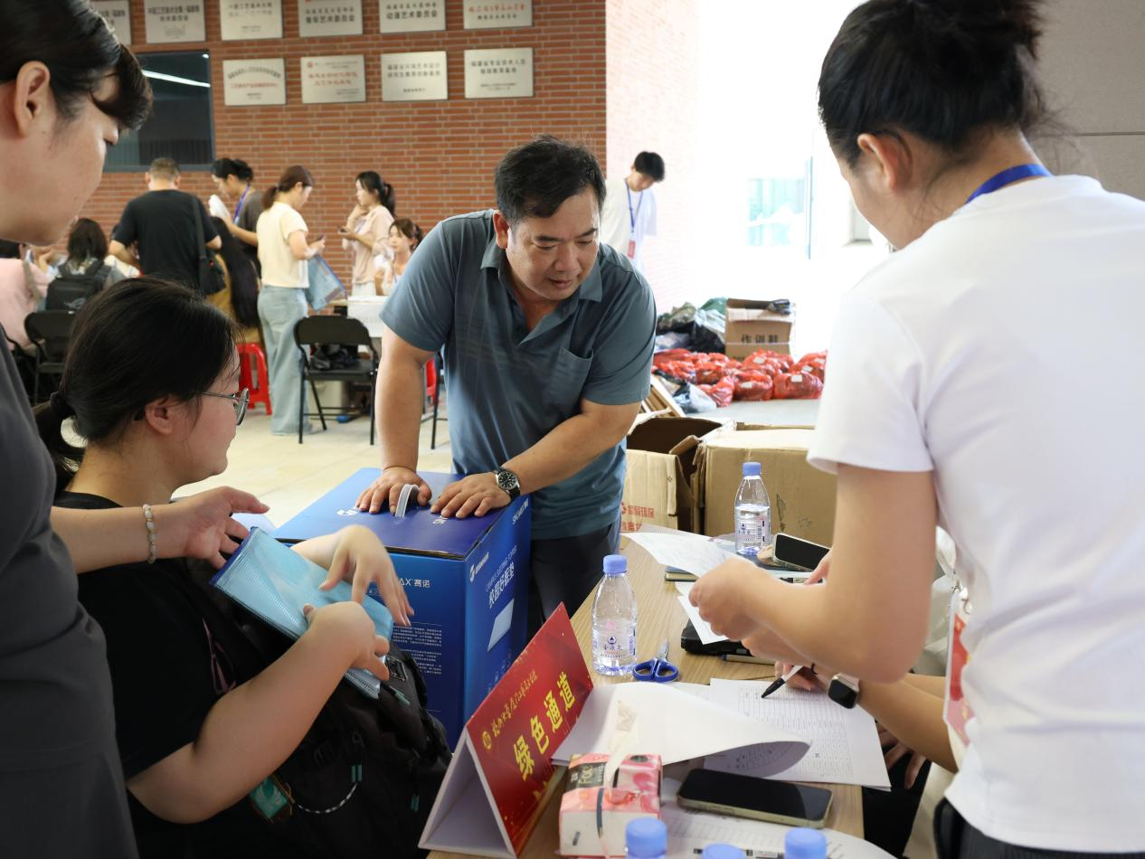 迎新中的关怀,藏在每一个贴心环节里:学院专设的“绿色通道”,让家庭经济困难的新生能直接领取登记表记下需求,志愿者全程陪办、手把手指导服务;老师们深入关切,与学生及家长问候谈心,细致解答,用暖心话语驱散顾虑;志愿者也将细心准备的“爱心大礼包”亲手递到新生手中,沉甸甸的礼包里,装着学院最实在的牵挂。