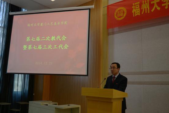 12月21日,我院七届二次教代会暨七届三次工代会在集美校区2#教学楼311会议室隆重举行。学院领导、教代会和工代会正式代表及特邀代表共75人参加了会议。会议由院工会主席林青副教授主持。
