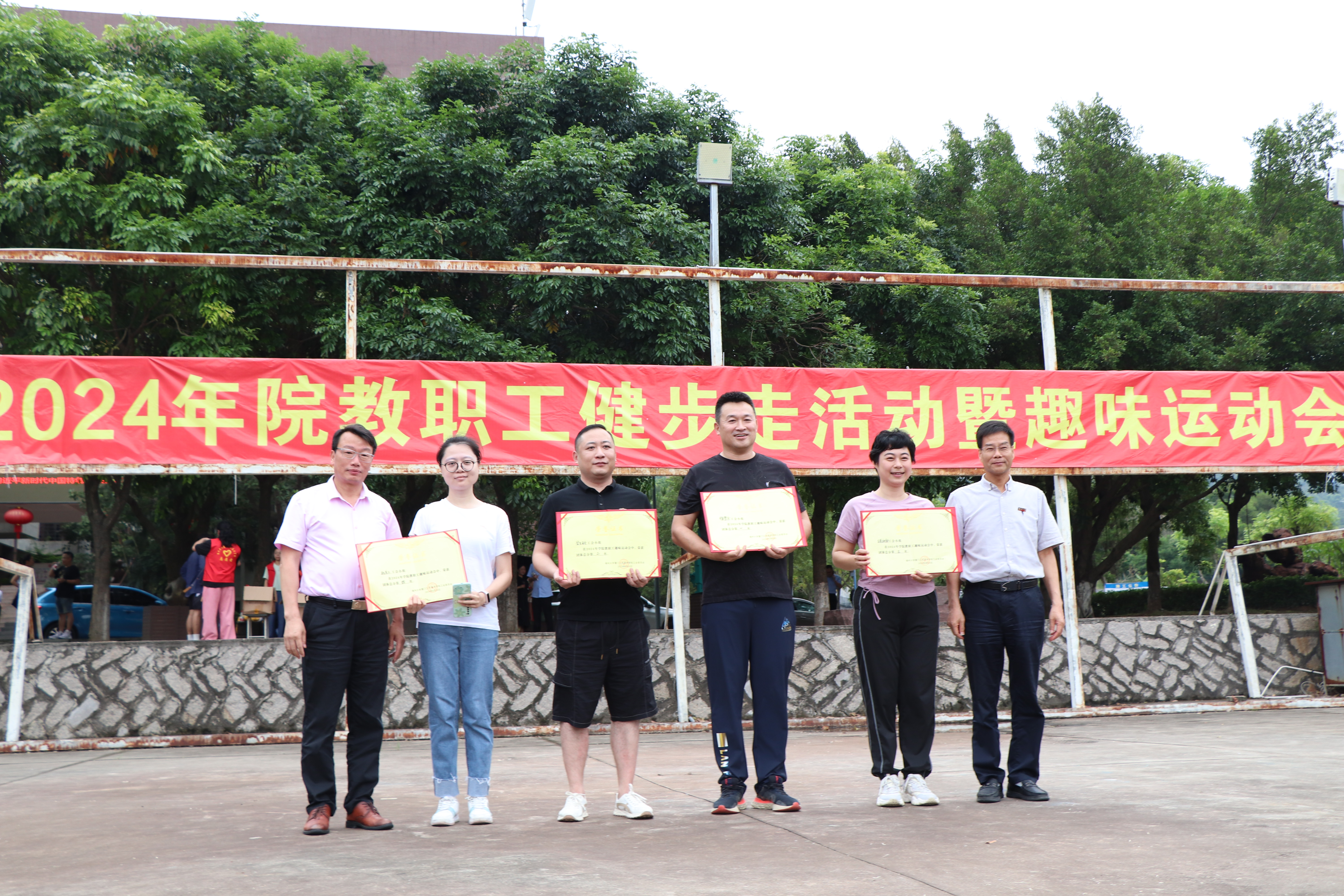 2024年5月30日下午,由学院工会主办的学院教职工校园健步走活动暨趣味运动会在学院操场成功举办。学院党委李礼建书记、林金强副书记、林旭副院长、工会黄志雄主席出席并参与了本次活动,李礼建书记为活动致辞。