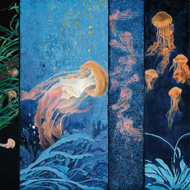 2022级漆画 叶子涵《水母四重奏》《漆画设计》指导老师:苏国伟,《漆画创作(一)指导老师:杨国舫