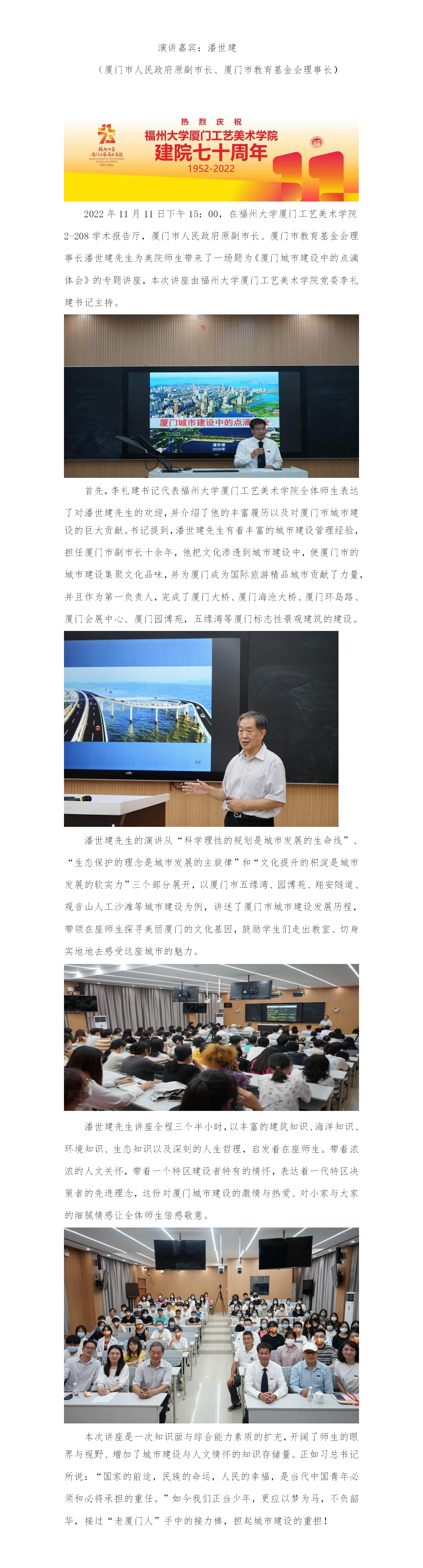 七十周年院庆系列活动讲座——《厦门城市建设中的点滴体会》