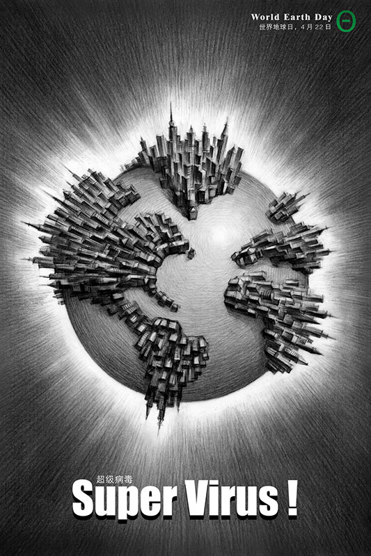 海报《爱护地球》 获全国环保广告·铜奖、入选第十届全国美展(2004)