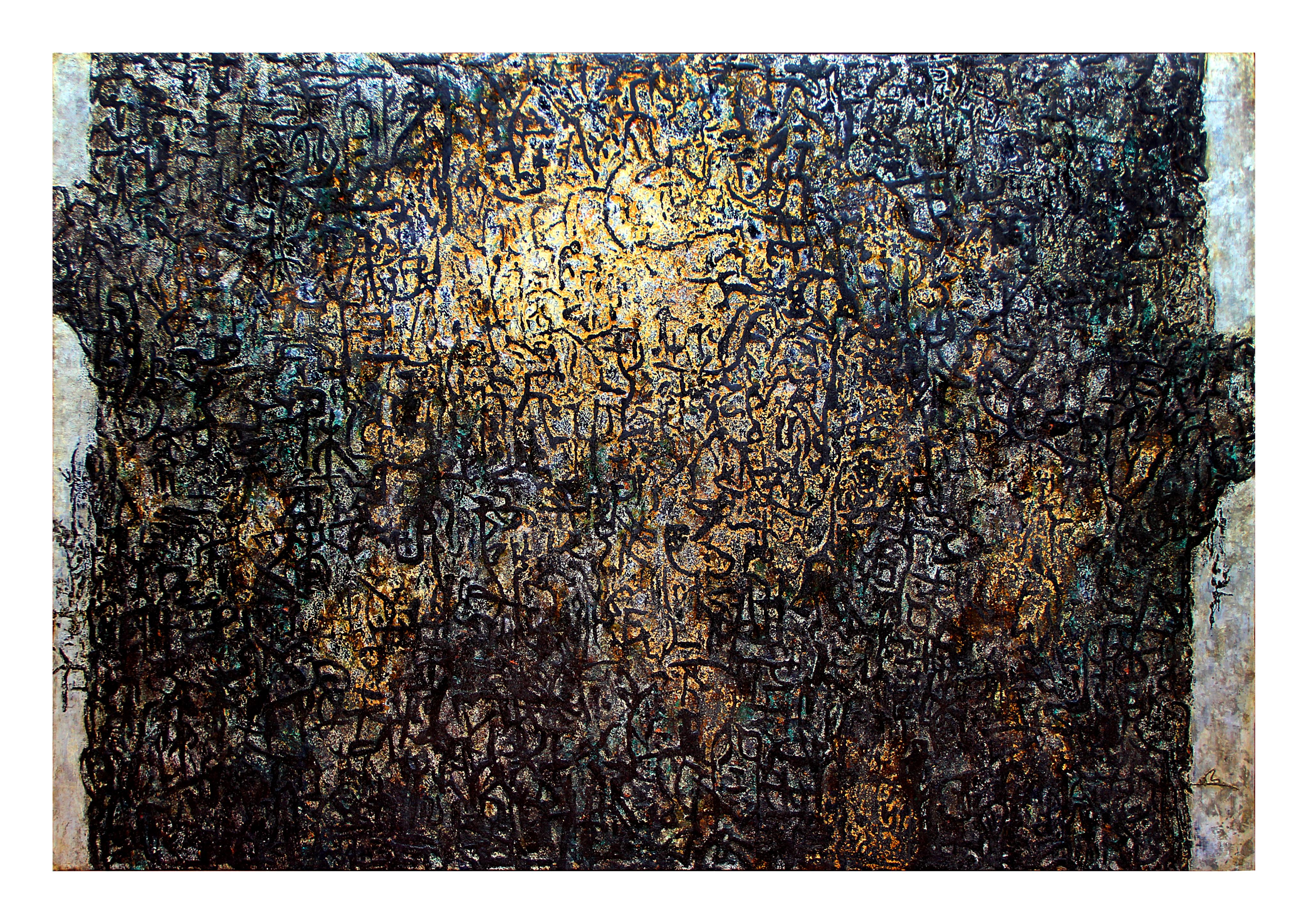 2019年 郭明《光阴会话》120x180cm “材料与图式”2019福建漆画全国巡回展