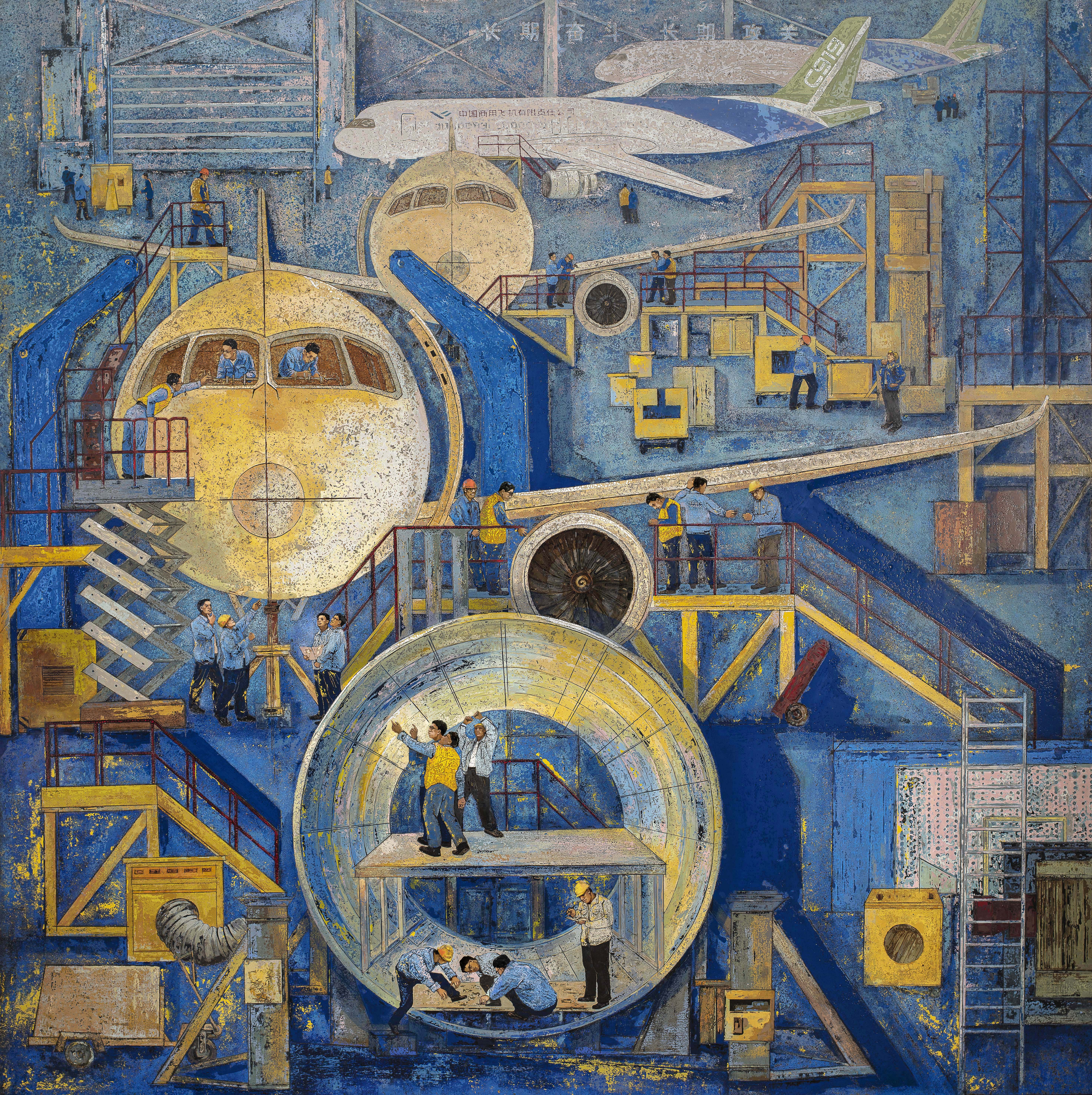 漆画《中国之翼》获第四届中国(宁波北仑)青年漆画展入选,尺寸:180cmX180cm,2023年