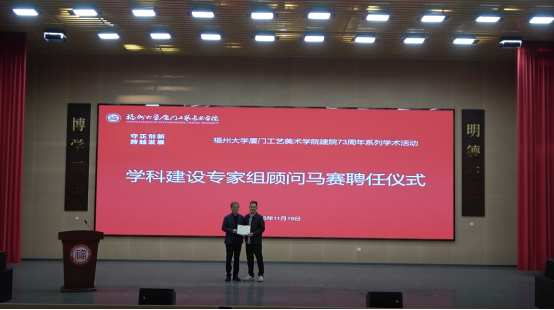 为庆祝福州大学厦门工艺美术学院建院73周年,2025年11月19日,清华大学长聘教授、博士生导师马赛教授应邀来院开展学术讲座与交流。