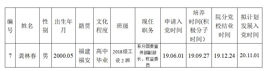 为了加强对发展党员工作的民主监督,确保发展新党员的质量,现将入党积极分子李俐婷等7位同志的有关情况进行公示(详见《拟批准的发展对象基本情况表》),公示期10月19日至10月25日止。有异议者,可向学院党委反映。