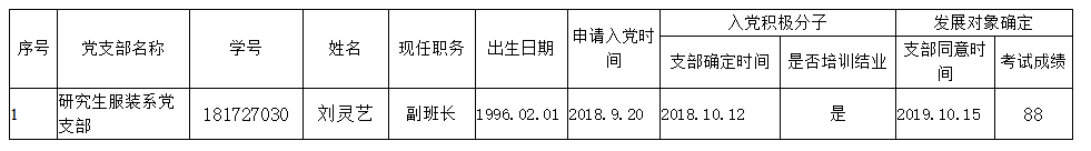 为了加强对发展党员工作的民主监督,确保发展新党员的质量,现将入党积极分子刘灵艺同志的有关情况进行公示(详见《拟批准的发展对象基本情况表》),公示期10月15日至10月21日止。有异议者,可向学院党委反映。
