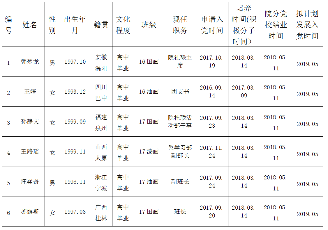 拟批准的发展对象基本情况表(表一)