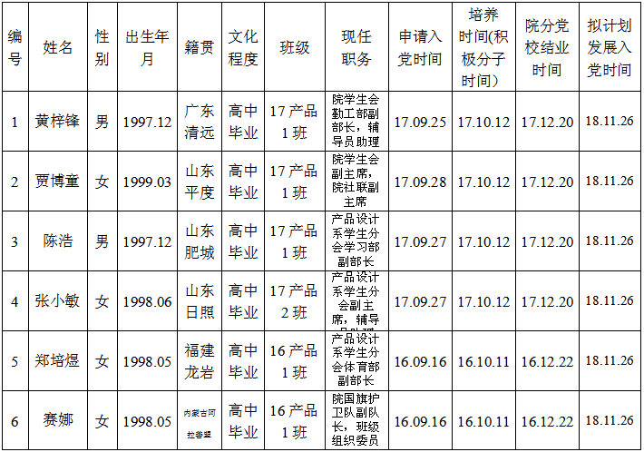 关于拟批准黄梓锋等9位同志为党的发展对象的公示书