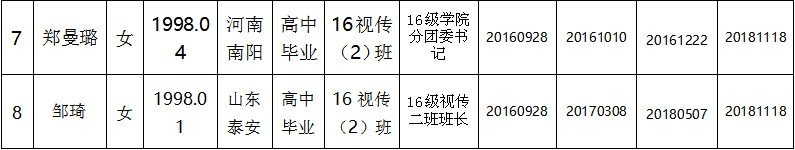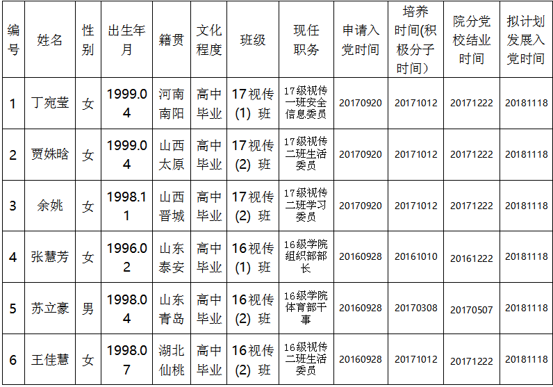 关于拟批准丁宛莹等8位同志为党的发展对象的公示书